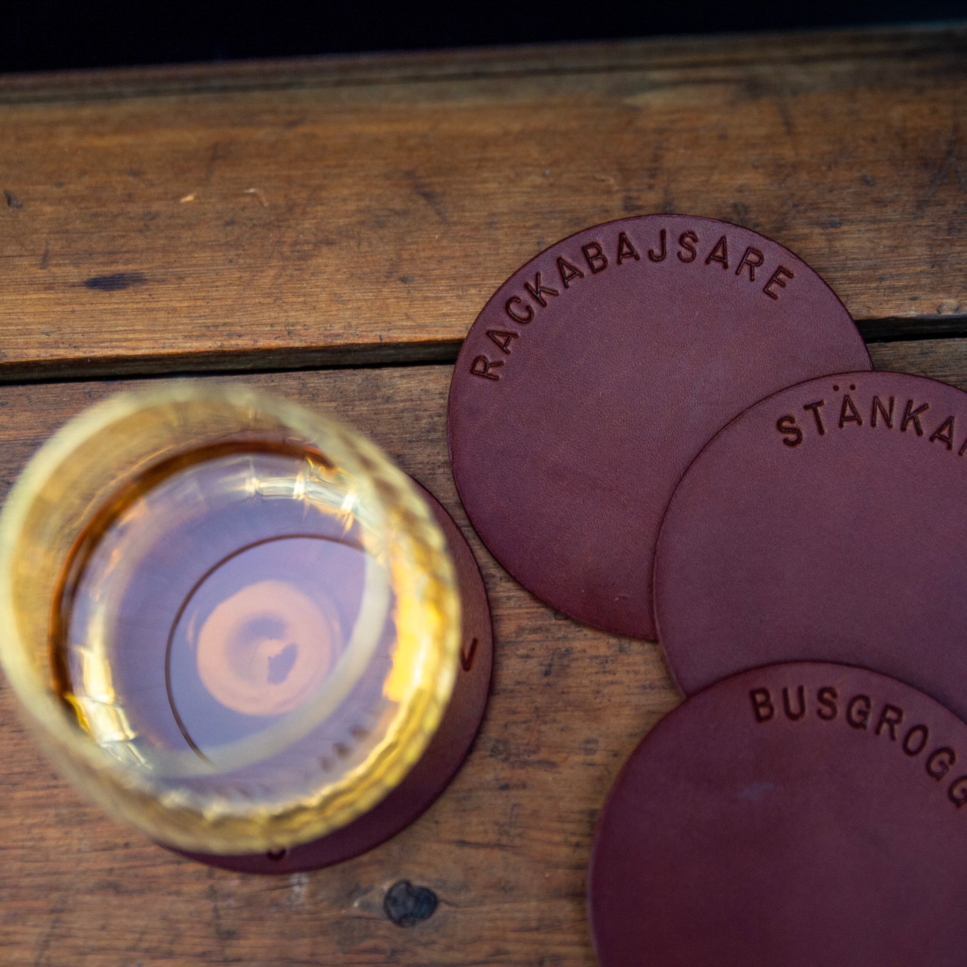 Våra underlägg är handgjorda i svenskt full grain-läder – slitstarkt, tidlöst och vackrare för varje användning. Perfekta till både kaffekoppen och kvällsdrinken, och en fin present till den som uppskattar hantverk.
